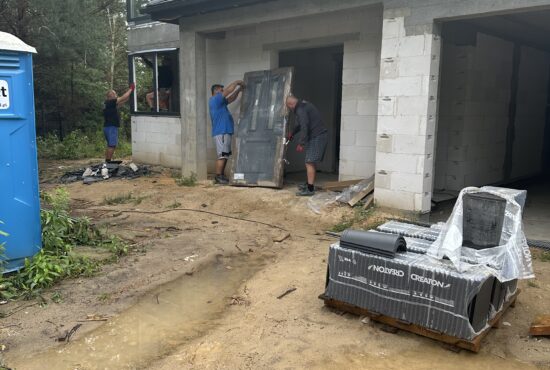 Etap 4: pokrycie dachu, wymurowanie ścianek działowych, montaż stolarki zewnętrznej - okna i drzwi zewnętrzne, wykonanie instalacji elektrycznej